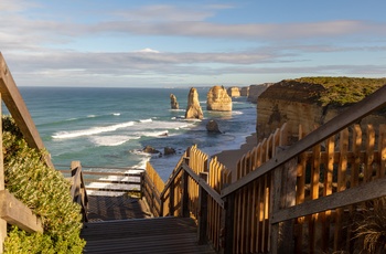 Du kan mærke, når det forstøvede havvand rammer dit ansigt i vinden, og det dufter salt og friskt, når du står på kystens kant og betragter de 12 Apostle circa 300 km. vest for Melbourne. Under dig er der 50 meters frit fald, hvor klipperne styrter i vandet, og det kan godt sætte din højdeskræk lidt på prøve. Men det overvældende syn får dig hurtigt til at glemme det igen. De otte tilbageværende klippetårne er i en åben kamp mod havvandets ubarmhjertige erosion, og det er svært ikke at lade sig rive med i denne smukke og rørende naturscene, hvor apostlenes fremtid er meget usikker.