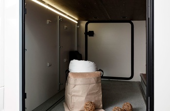 Du skal leje en helintegreret autocamper hvis du vil have maksimal udnyttelse af pladsen og komfortable senge. I en helintegreret autocamper er der glimrende opbevaringsmuligheder både indvendigt i de store skabe samt i "garagen", som er placeret under de bagerste senge.
