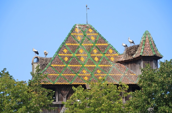 Herfra går turen videre ad de små Vogeser-veje til Munster. Ikke fordi byen i sig selv er noget specielt, men fordi både den katolske kirke Eglise Saint-Leger og den nærliggende protestantiske har op til fem storkereder på tage og spir. Storkereder er der også nok af i Eguisheim, der er næste stop på vejen.
