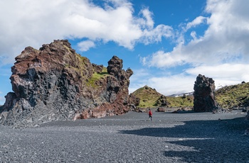 Djúpalónssandur er en stand som ligger i Snæfellsjökull Nationalpark - den vestlige del af Snæfellsnes halvøen. Stranden er kendt for sine sorte små lavasten, som bliver kaldt ”Djúpalónsperlur – perlerne fra Djúpalón”, samt de omkringliggende lavaformationer. På stranden vil du finde rester af skibsvrag. Det er rester af det britiske skib The Epine GY7, som gik på grund i 1948, hvor 14 mænd ulykkeligt mistede livet. Kontrasten af de smukke omgivelser og resterne af skibsvraget er tankevækkende og hjerteskærende. I dag er alt på stranden beskyttet, og det er ikke tilladt at samle noget op – hverken sten eller skibsvrag.