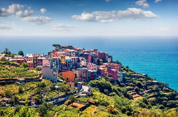 Nationalparken omkring de farverige facader af Cinque Terre - de fem landsbyer Monterosso, Vernazza, Corniglia, Manarola og Riomaggiore - blev erklæret verdensarvssted i 1997 og er blandt de mest fotograferede motiver i Italien. På en betagende kystvandring besøger I de 5 små landsbyer. Med det glitrende hav på højre hånd vandrer I fra by til by og nyder de helt enestående omgivelser. Bliver turen for lang, kan den til enhver tid afkortes med tog eller båd.
