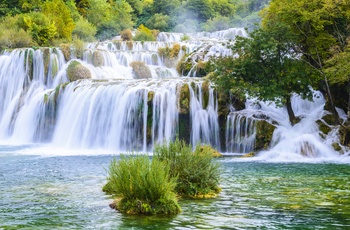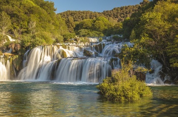 I dag går turen lidt nordpå til den fantastiske Krka National Park nordøst for Šibenik, opkaldt efter floden Krka, der omslutter nationalparken. En park man både må og skal besøge. Her venter en eventyrlig naturoplevelse. Der er flere indgange men vi forslår de to mest oplagte: I kan køre til Lozovac og parkere bilen på den store p-plads og tage bussen ned til selve parken, eller køre til Skradin, parkere bilen på den store p-plads ved havnen og tage færgen videre til nationalparken. En fantastisk smuk sejltur på en lille halv time.