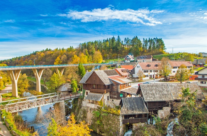 Rastoke er kendt for sine velbevarede møller og de maleriske små vandfald og kaskader langs floden Slunjčica, der her løber sammen med floden Korana, der kommer fra Plitvice Lakes National Park. Rastoke kaldes ofte Plitvice-søens lillesøster på grund af naturens sammenlignelighed.