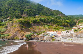 De grønne bjerge kaster sig i havet, nærmest uden forvarsel, og blander sig med det brusende hav ved Madeiras nordkyst. Ved foden af de dramatiske bjergsider er der presset en lille by ind mellem klipper og hav, kun adskilt fra det brusende vand af en mørk strand. Vulkanske klippestumper ligger spredt som en stor sort klo, der forsøger at gribe havet. De vulkanske klippeformationer ligger som en beskyttende dæmning, så I kan bade i den poolagtige vig og nyde den blågrønne, klare nuance af havet mod de mørke bjergsider. Seixal er et interessant stop på jeres kør-selv-ferie langs øens vilde nordkyst.