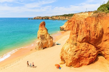 Badebyen Praia da Rocha byder på en 2 kilometer gylden sandstrand og er indrammet af maleriske klippeformationer og naturslebne grotter i forskellige formationer. Praia da Rocha betyder klippestrand og det er præcis det, der kendetegner denne del af Algarvekysten - og det siges, at stranden er en af Europas mest fotograferede. Det er velfortjent, da stranden såre simpel er betagende. Langs stranden løber en livlig strandpromenade og lidt inde i landet ligger kystbyen Portimao med restauranter og en skøn marina ved Arade-flodens udmunding.