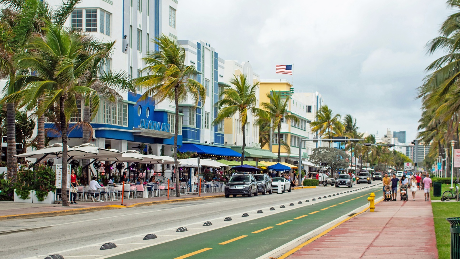 • Ocean Drive, Miami Beach's berømte strandpromenade