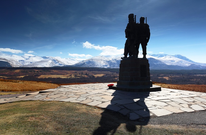 Lige nord for Fort Williams i dalen ved River Spean står en tavs opstilling af tre soldater vendt mod syd og den flotteste udsigt til Ben Nevis. Soldaterne er et effektfuldt mindesmærke over de commando soldater, der trænede her i det skotske højland under den anden verdenskrig.