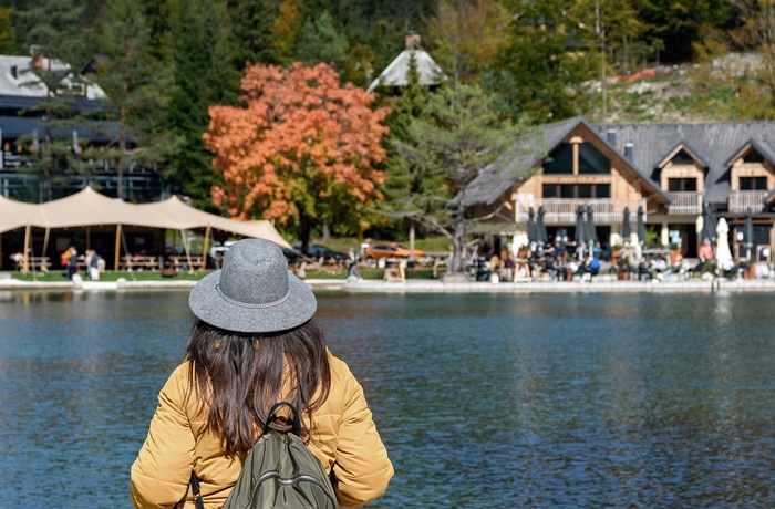 Søens krystalklare lokker til en dukkert, og selvom temperaturen kan være frisk, er det den ultimative opkvikker efter en dag på farten. Rundt om søen finder du idylliske vandrestier, hvor du får udsigt til bjergene Razor og Prisojnik, der majestætisk rejser sig mod himlen. Her er også moler, små strande og en udsigtsplatform, der ikke bare giver et flot overblik over søen, men perfekt til udspring i søen.