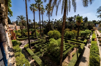 Real Alcázars mure indrammer alverdens haver: fra harmoniske renæssancehaver og plateauinddelte prydhaver til den sirligt anlagte labyrint og de asymmetriske Jardines de Murillo langs ydermuren. Følg havernes stier og lad jer indhylle af havernes skønhed omgivet af vilde påfugle, stedsegrønne hække og farverige blomster. Fra springvand, fontæner og vandfald strømmer en beroligende rislen, mens de geometriske grusstier og snorlige akser af alléer og trapper er en fryd for det grafiske øje. Her dufter af eksotiske blomster, nyklippet hæk og sydspansk sommer.