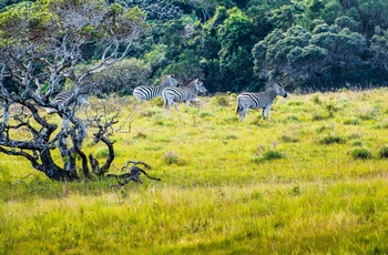 Området dækker 40.000 hektarer og byder på et væld at oplevelser med natur og dyreliv. Selv i et land, som tit kaldes, Land of Nature Reserves, har eMkhuze sin helt egen charme med store skovområder med Sherbet-, Yellow Fever- og Red Heart træer. Området kan prale med mere end 600 forskellige fuglearter, som fx pelikaner, gæs og fiskeørne. Også landdyrene er vidt repræsenteret med diverse antiloper, bucks, zebara, leopard, aber, giraffer og næsehorn. Oplev det hele med deltagelse i Game Drive, vandreture eller sejlads på floden.