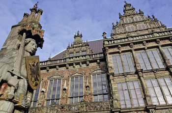 Det kønne lille kvarter Schnoor er nok byens mest charmerende - og med sikkerhed det ældste. Kvarterets smalle middelaldergyder og små farverige huse, der ligger som perler på en snor (deraf navnet), lokker med talrige restauranter, cafeer og butikker. Prøv det hjemmelavede og lækre bagværk på en af kvarterets cafeér og tehuse. Omkring byens hovedtorv, finder du Bremens mest berømte bygninger og seværdigheder: St. Petri katedralen, Statuen af Roland, byens beskytter, og det historiske rådhus, de to sidstnævnte er begge på UNESCOs verdensarvsliste. Gå langs siden af rådhuset forbi restaurant Ratskeller, her støder du på den berømte bronzestatue af dyrene fra Grimms Eventyr, Bremen Stadsmusikanterne. Gå ikke glip af muligheden for at sige goddag til æslet, det skulle ifølge legenden bringe held. Overfor rådhuset, i den anden ende af torvet, er indgangen til Böttcherstrasse, der er en af Tysklands mest særprægede arkitektoniske gader. Gadens store tilløbsstykke er klokkespillet, som er lavet af det berømte tyske meissnerporcelæn, og mens klokkerne spiller deres melodi, ser man historiske berømtheder dukke frem.