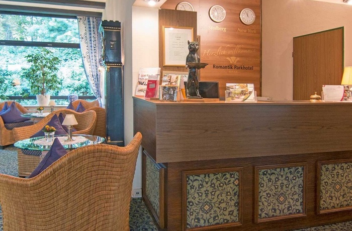 Det 4-stjerne garni-hotel Romantik Parkhotel am Hammerberg, bygget i landhusstil, ligger i fredelige, landlige omgivelser tæt på skoven på Hammerberg. Ikke desto mindre er der kun få minutters gang til Stolbergs restaurerede gamle bydel med Burg Stolberg, og her finder I en række forskellige restauranter og barer. Fra hotellet er der ikke langt til den gamle kejserlige by Aachen, den hollandske europæiske by Maastricht og til belgiske Liège. Romantik Parkhotel i Stolberg er et rigtige sted at afslappe af og passende til et hyggeligt ophold.