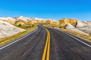 " Tæt på Badlands ligger Black Hills National Forest, hvor du blandt andet finder Custer State Park, Mount Rushmore og Crazy Horse Memorial"