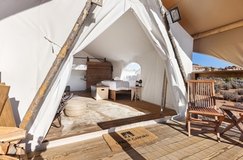 En anderledes måde at udforske Lake Powell og de omkringliggende orangerøde sletter og klipper, er ved at bo i denne luksuriøse teltcamp lige midt i det hele. Højt beliggende på et plateau med udsigt der strækker sig helt til Grand Staircase på en klar dag, kan I nyde udsigten fra teltcampen.