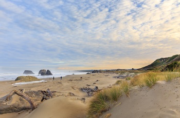 Hvis du kører via Highway 101 langs Oregons kyst, der lokker med hyggelige strandbyer, stille bugter og masser af naturoplevelser, bør du sætte tid af til Oregon Dunes. Det en af Oregons mest spændende kyststrækninger med en verdens største vidder af tempererede kystsandklitter. Området med sandklitter der flere steder hæver sig mere end 150 meter over havets overflade, strækker sig hele 64 kilometer langs Stillehavskysten og er en del af Siuslaw National Forest.
