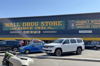 I dag står vejskiltene stadig på US 90 og lokker, men det lille apotek er vokset til et stort kompleks med butiksgade, restauranter, udstillinger, aktiviteter og underholdning for små og store. Der er masser at se på, så du kan snildt afsætte en time eller to til besøget. I dag stopper mere end to millioner rejsende hvert eneste år ved Wall Drug Store for et gratis glas isvand...